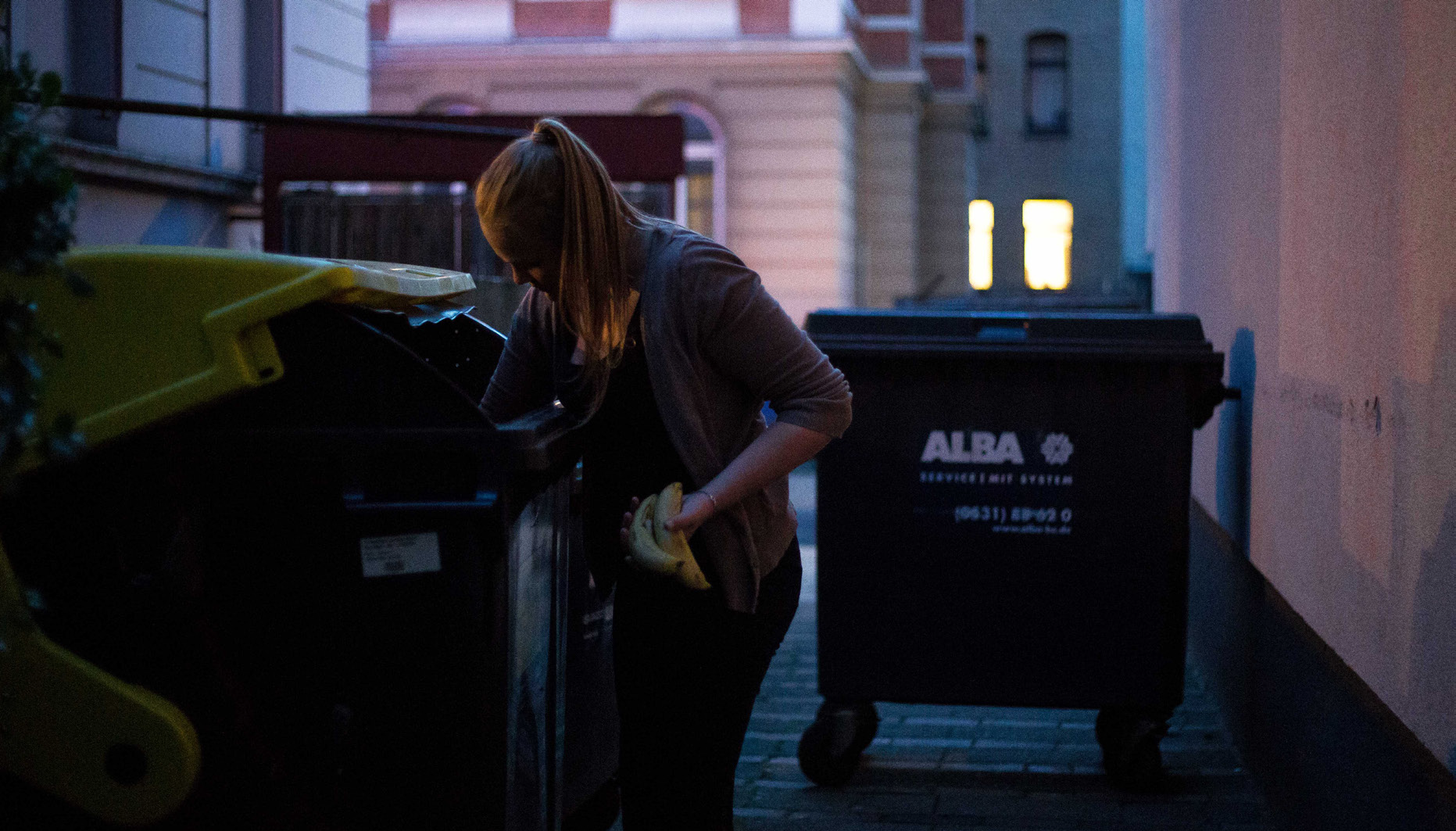 Lebensmittel die weggeworfen, aber noch genießbar sind, werden aus den Containern und Mülltonnen der Supermärkte geholt. Als „Containern“, „Dumpstern“ oder „Mülltauchen“ wird diese Praxis beschrieben. Ursprünglich stammt die Idee aus den USA. Die sogenannten „Freeganer“ stehen dem Massenkonsum kritisch gegenüber. Die Anhänger des Freeganismus (‚frei und vegan‘) versuchen sich ausschließlich durch weggeworfene oder geschenkt bekomme Lebensmittel zu ernähren. Hanna sieht sich nicht als Freeganerin an, da sie zusätzlich zum Containern regelmäßig einkaufen geht.