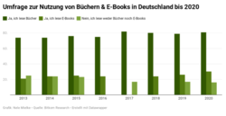 Bei AutorInnen ist der Wunsch nach einem eigenen Buch im Regal groß. Die langanhaltende Diskussion, ob das E-Book das physische Buch abgelöst hat, beschäftigt auch Nikolina und Sonny. Während Nikolina dem aktuellen Trend der „Vintage Waves“ ein neues Boomen von Büchern nachspricht, sieht Sonny dies kritischer: „Ich denke, es wird in den nächsten Jahren leider sicherlich der Fall sein. Ich sehe das auch nicht negativ, aber ich lese eigentlich immer noch gerne lieber ein richtiges Buch.“ Dies spiegelt sich auch in der Gesellschaft wider. Eine Umfrage des Digitalverbands Bitkom zeigt, dass die meisten Menschen noch physische Bücher nutzen. Während jedoch der Anteil an Lesern eines E-Books über die Jahre weiter ansteigt.
