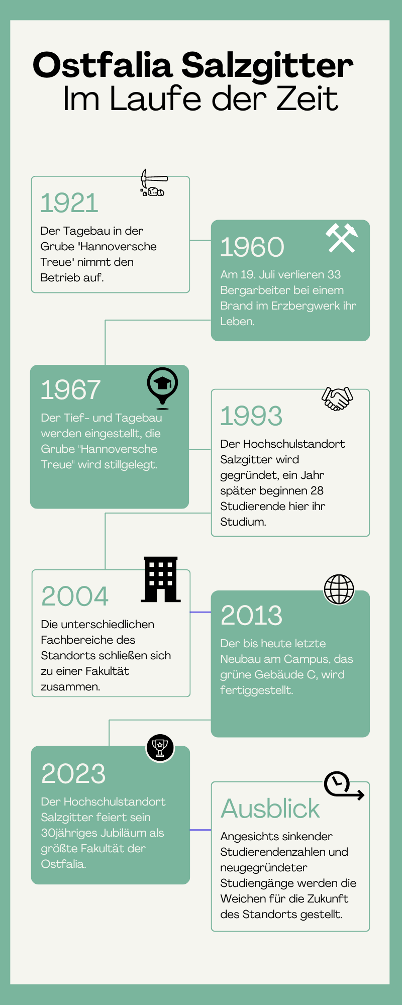 Wenn man heute die Studierenden am Campus nach der Vor- und Entstehungsgeschichte ihrer Hochschule fragt, blickt man meist in fragende Gesichter. Erst nach einem Verweis auf den weiterhin verwendeten Namen des A-Gebäudes, der „Lohnhalle“, erinnern sich einige wenige an den ehemaligen Betrieb unter Tage. Nicht verwunderlich, für den Großteil der StudentInnen hat diese Historie im Alltag kaum noch Relevanz. Nur wer aus der allernächsten Region kommt, wird schon einmal mit der langen Bergbautradition Salzgitters konfrontiert worden sein. Oder natürlich, wer sie noch selbst miterlebt hat.