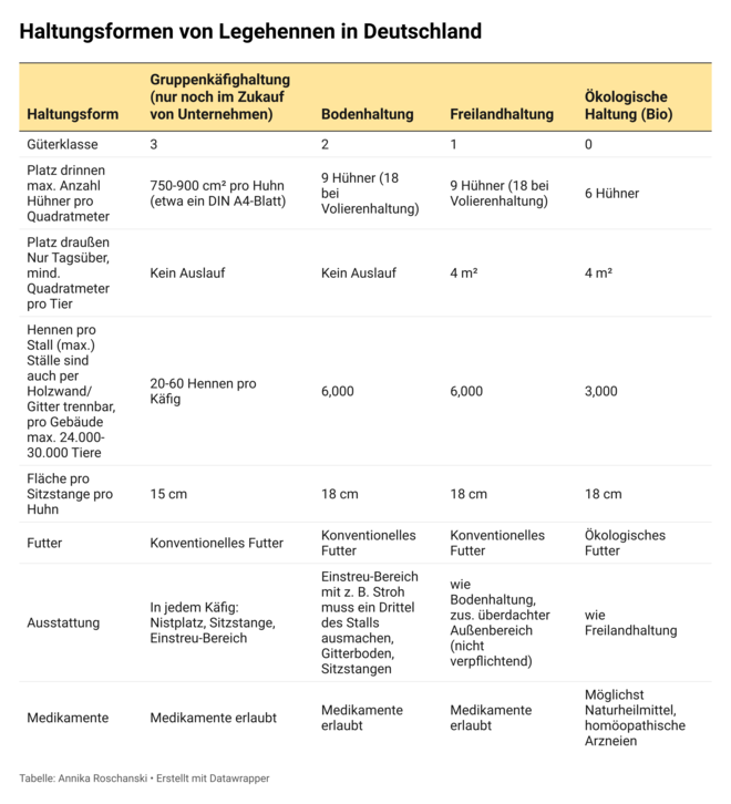 Nach der EU-Vermarktungsnorm muss die Haltung auf dem Ei gekennzeichnet sein. Üblich ist dafür der sogenannte Erzeugercode. Die erste Zahl gibt Auskunft über die Haltungsform, die Buchstaben über das Erzeugerland und der Zahlencode am Ende über den Legebetrieb und Stall. Diese kann über Websites wie was-steht-auf-dem-ei.de abgefragt werden. Die Kennzeichnungspflicht gilt jedoch nicht für Eier, die direkt an der Erzeugerstelle gekauft werden, wie bei Eiermobilen oder Hofläden. Die Kennzeichnungspflicht bezieht sich nur auf frische, rohe Eier.