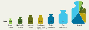 Auch bei den Nachernteverlusten, die mit 1,5 Millionen Tonnen die zweite Stufe der Wertschöpfungskette bilden, ist das Vermeidungspotenzial gering. Hierzu zählen beispielsweise Schädlings- und Krankheitsbefall während des Transports oder der Lagerung. Bei Obst und Gemüse gibt es die höchsten Verluste. Bei der Weiterverarbeitung von Nahrungsmitteln auf Stufe drei entstehen Verluste, die Prozessverluste genannt werden und 2,6 Millionen Tonnen betragen. Diese entstehen während der industriellen oder häuslichen Weiterverarbeitung von landwirtschaftlichen Produkten zu Essen. Beispielsweise wenn Säfte und Konserven hergestellt, Tiere geschlachtet oder Mehle gemahlen werden.