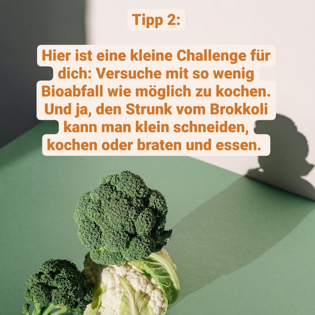 Die Thematik der Lebensmittelverschwendung rückt immer mehr in die Mitte der Gesellschaft. Mit wenig Zeitaufwand kann viel bewirkt werden. Dabei helfen Fragen wie „Brauche ich das wirklich?“, „Was will ich kochen?“ oder einfach den eigenen Sinnen vertrauen, die Müllberge voller genießbarer Lebensmittel schrumpfen zu lassen.