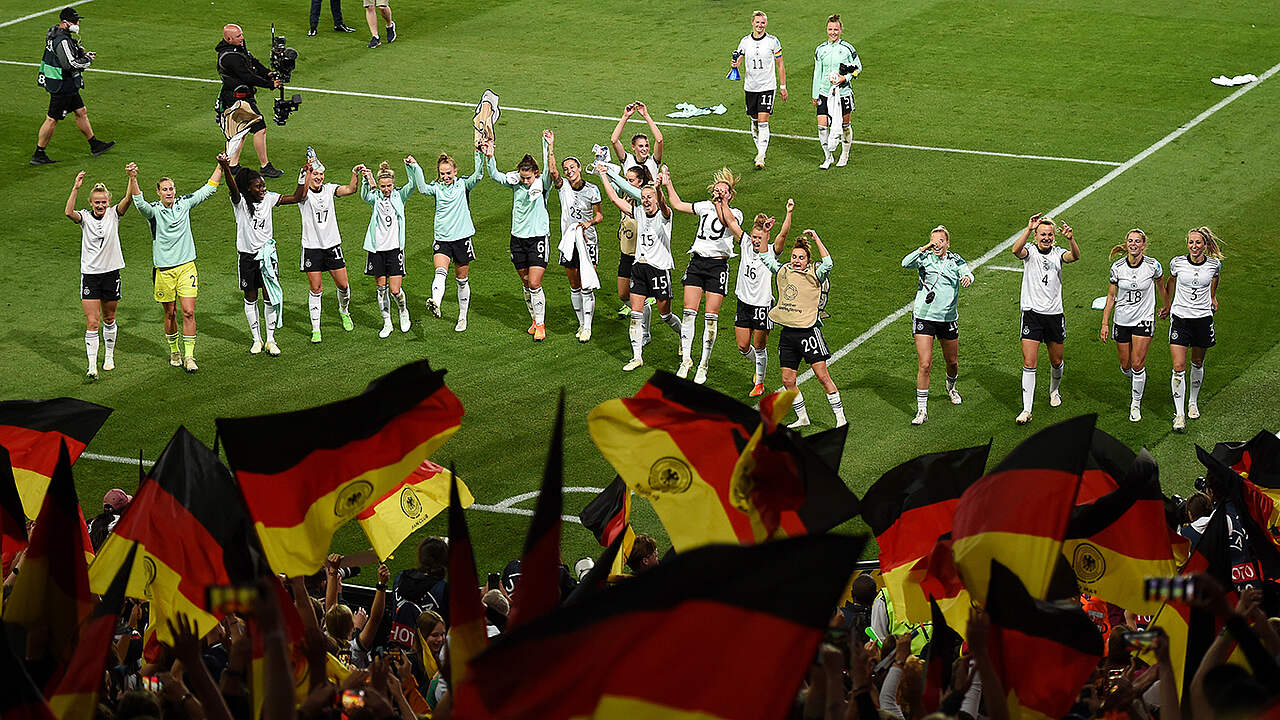 Das Finale gegen Gastgeber England fand vor 87.000 ZuschauerInnen im Wembley Stadion statt, Rekordkulisse für ein EM-Finale. Nach einem kampfbetonten Spiel über 120 Minuten unterlag die deutsche Nationalmannschaft den Engländerinnen mit 2:1. Trotz eines überragenden Turniers und einer Silbermedaille stand die Enttäuschung jeder Spielerin ins Gesicht geschrieben. Am Tag nach dem Finale dann die große Überraschung. Beim Empfang der DFB-Frauen vor dem Rathaus versammelten sich etwa 7.000 Fans des DFB-Teams. Trikots, schwarz-rot-goldene Fahnen, alle möglichen Fanartikel waren dabei. Trainerteam und Spielerinnen waren den Tränen nah. „Das ist wirklich überwältigend. Damit haben wir nicht gerechnet, dass so viele Menschen hier sind", berichtete Lina Magull im Ersten, die für das zwischenzeitliche 1:1 im Finale gesorgt hatte.