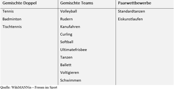 Von Mal zu Mal wurden immer mehr Frauen in unterschiedlichsten Kategorien zugelassen. Doch wer denkt, dass nur das weibliche Geschlecht, um mehr Akzeptanz zu kämpfen hat, irrt sich. Es gibt immer noch Sportarten, bei denen ausschließlich Frauen zugelassen werden. Aus diesem Grund werden bei den kommenden Olympischen Spielen 2021 in Tokio keine Männer bei der Rhythmischen Sportgymnastik oder dem Synchronschwimmen zu finden sein. Es gibt jedoch auch Wettkämpfe, an denen Unisex- Mannschaften oder gemischte Paare teilnehmen können.