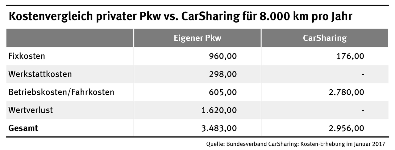 Besonders für Wenig- und Gelegenheitsfahrer bietet es sich an, Carsharing zu nutzen. Dadurch ist es möglich, dass Leute wie Lena ihr Mobilitätsverhalten und den Alltag freier und flexibler gestalten können. Immer mehr junge Leute nutzen dieses Angebot und auch für Studierende ist es eine gute und günstigere Alternative zum eigenen Auto. Es werden hohe Fixkosten gespart und nur die tatsächliche Nutzung muss bezahlt werden. Es entfallen Anschaffungs- und Fixkosten sowie Wartungs- und Reparaturkosten. Eine monatliche Gebühr entfällt bei den Anbietern ebenfalls.