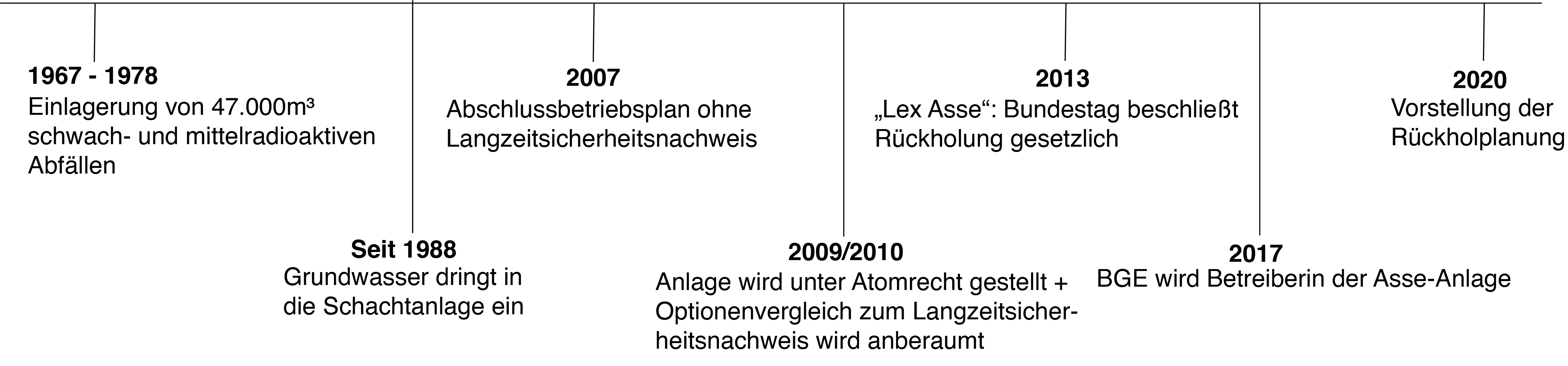 Während 2007 schon ein Abschlussbetriebsplan zur Schließung der Schachtanlage vorlag, kommt wieder Bewegung in die Asse-Thematik. Bis dato lief das Bergwerk ausschließlich unter dem Bergrecht, da es offiziell nicht als Endlager galt – faktisch wurde es jedoch so betrieben. Das Atomrecht allerdings, das eigentlich für Endlagerstätten gelten sollte, stellt besondere Anforderungen an die Schließung. Beispielsweise muss ein Nachweis geführt werden, der die Langzeitsicherheit des Atommüllendlagers feststellt. Dieser fehlte 2007. Heike Wiegel ist Vorstandsmitglied des Vereins AufpASSEn, der sich vor Ort zum Thema Asse II engagiert. Sie erinnert sich an die Anfänge: „Wir haben sehr lange Zeit immer wieder gefordert, dass für Asse II – natürlich – das Atomrecht eingesetzt werden muss. Es liegt dort erheblicher Atommüll in dem Schacht und es kann doch nicht sein, dass das nur unter Bergrecht läuft!“ Als dann noch bekannt wurde, dass der damalige Betreiber, die Gesellschaft für Strahlenforschung, ohne Genehmigung mit kontaminierter Salzlauge im Bergwerk umgegangen ist, führt Wiegel an, sei es auch bei den politischen Vertretern zum Umdenken gekommen. So beschlossen 2008 drei zuständige Bundes- und Landesministerien, die Asse-Anlage offiziell als Endlagerungsstätte anzusehen. Besser spät als nie, könnte man an dieser Stelle anfügen. Und trotzdem ist es aus heutiger Sicht unverantwortlich, dass dies erst 30 Jahre nach der eigentlichen Einlagerung des strahlenden Mülls geschieht. Mit der Anwendung des Atomrechts war nun das Bundesamt für Strahlenschutz Betreiber. Für die Schließung wurde dann auch der Langzeitsicherheitsnachweis notwendig. Ein darauffolgender Optionenvergleich zwischen Verfüllung, Umlagerung und Rückholung brachte die Entscheidung, die bis heute Bestand hat. Im Jahr 2013 beschloss der Bundestag diese Rückholung sogar gesetzlich im sogenannten „Lex Asse“.