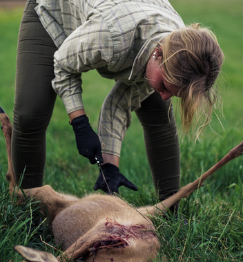 Lara betrachtet die beiden, auf den Rasen liegenden Rehböcke und erklärt wie sie – obwohl sie sich als Tierliebhaberin bezeichnet – töten kann: „Man geht mit einer anderen Einstellung los. Ich finde die Rehe auch super niedlich. Aber wenn dann ein Rehbock kommt, dann stellst du dich im Kopf einfach um und willst Beute machen. Klingt vielleicht ein wenig animalisch, aber ich glaube, das ist einfach noch der Urinstinkt des Menschen.“