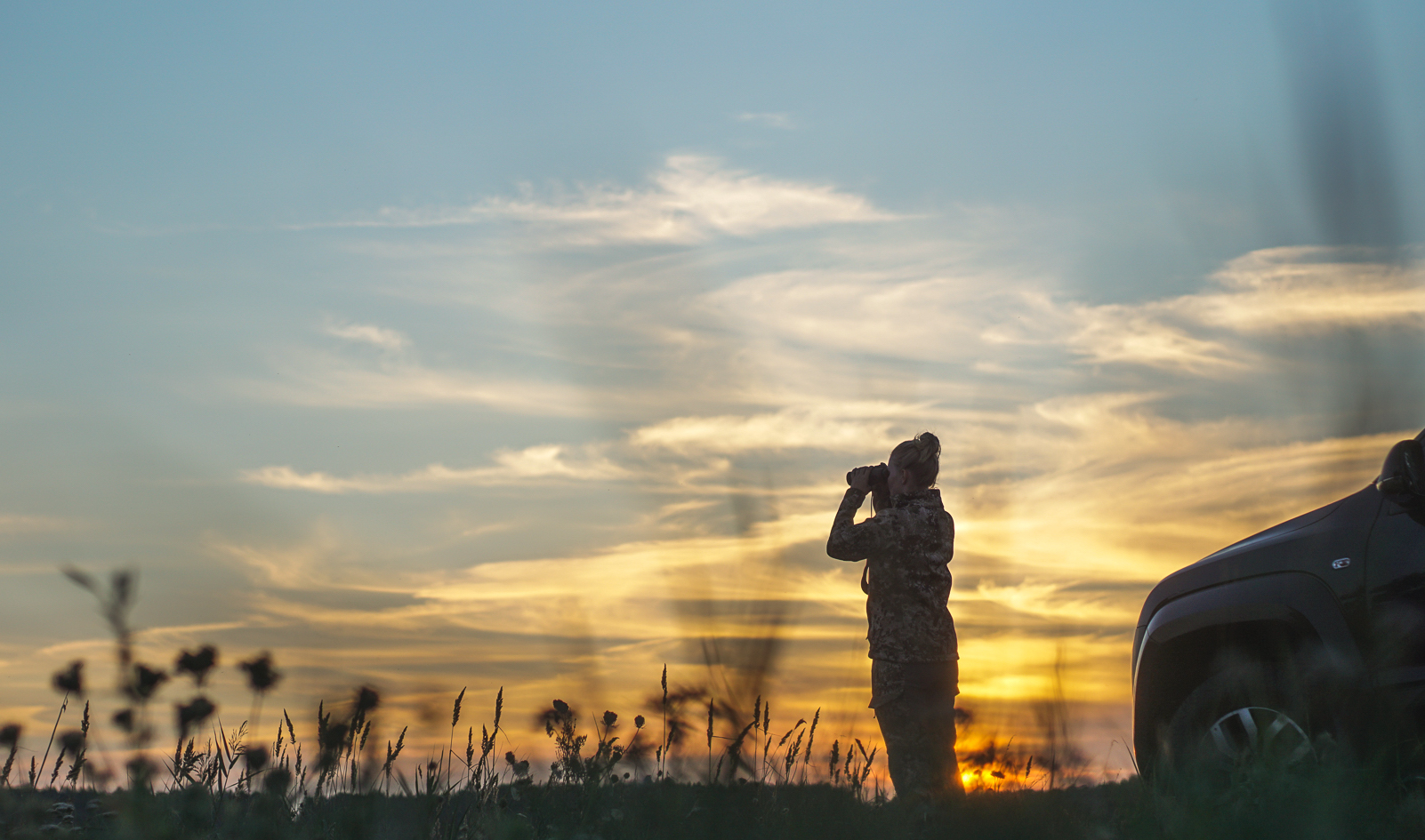 Ruckelnd setzt sich Laras Wagen in Bewegung. Der Sandweg hat tiefe Schlaglöcher, die bei der Finsternis kaum erkennbar sind. Das Auto ist voll beladen: Vier Jäger und Laras Hund Twix sitzen eng an eng. Einen nach dem anderen liefert sie die Männer an ihren Posten ab. Die 23-Jährige ist Jägerin, Falknerin, Hundeführerin und bildet Jagdhunde aus. Als Tochter einer Jägerfamilie war es für sie nur natürlich, schon von klein auf bei Jagden dabei zu sein. Mit 17 durfte sie dann selbst Hand anlegen: „Bei meinem ersten Mal auf Jagd hatte ich total zitternde Hände und danach habe ich die ganze Nacht von dem erlegten Rehbock geträumt. Aber danach ist mir das nie mehr passiert.“