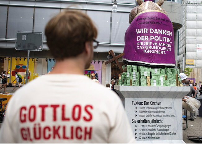 Natürlich sei die Stellung der Nicht-Gläubigen in Deutschland nicht vergleichbar mit Ländern, in denen Menschen wegen ihrer Religion verfolgt oder bedroht werden. „In Deutschland ist die Benachteiligung differenziert und subtil, aber dennoch wirksam und vorhanden“, findet der Politologe Michael Bauer. Die Vielzahl der Nicht-Religiösen werden hierzulande durch Gemeinschaften wie der Humanistischen Vereinigung und dem Internationalen Bund der Konfessionslosen und Atheisten (IBKA) vertreten. Wenn man so will, sind sie die Kirche der Nichtkirchenanhänger. Fragt man den IBKA, dann spielen die Glaubensgemeinschaften in Deutschland eine zu große Rolle in der Gesellschaft im Vergleich zu dem Bevölkerungsteil in Deutschland, der keiner Konfession angehört. Verständlich, so sind Kirchenvertreter in wesentlichen gesellschaftlichen Gremien am Prozess der politischen Willensbildung repräsentiert und der Staat zieht für die anerkannten Religionsgemeinschaften Kirchensteuer ein. Dem IBKA ist dies ein Dorn im Auge. Und mehr als das.