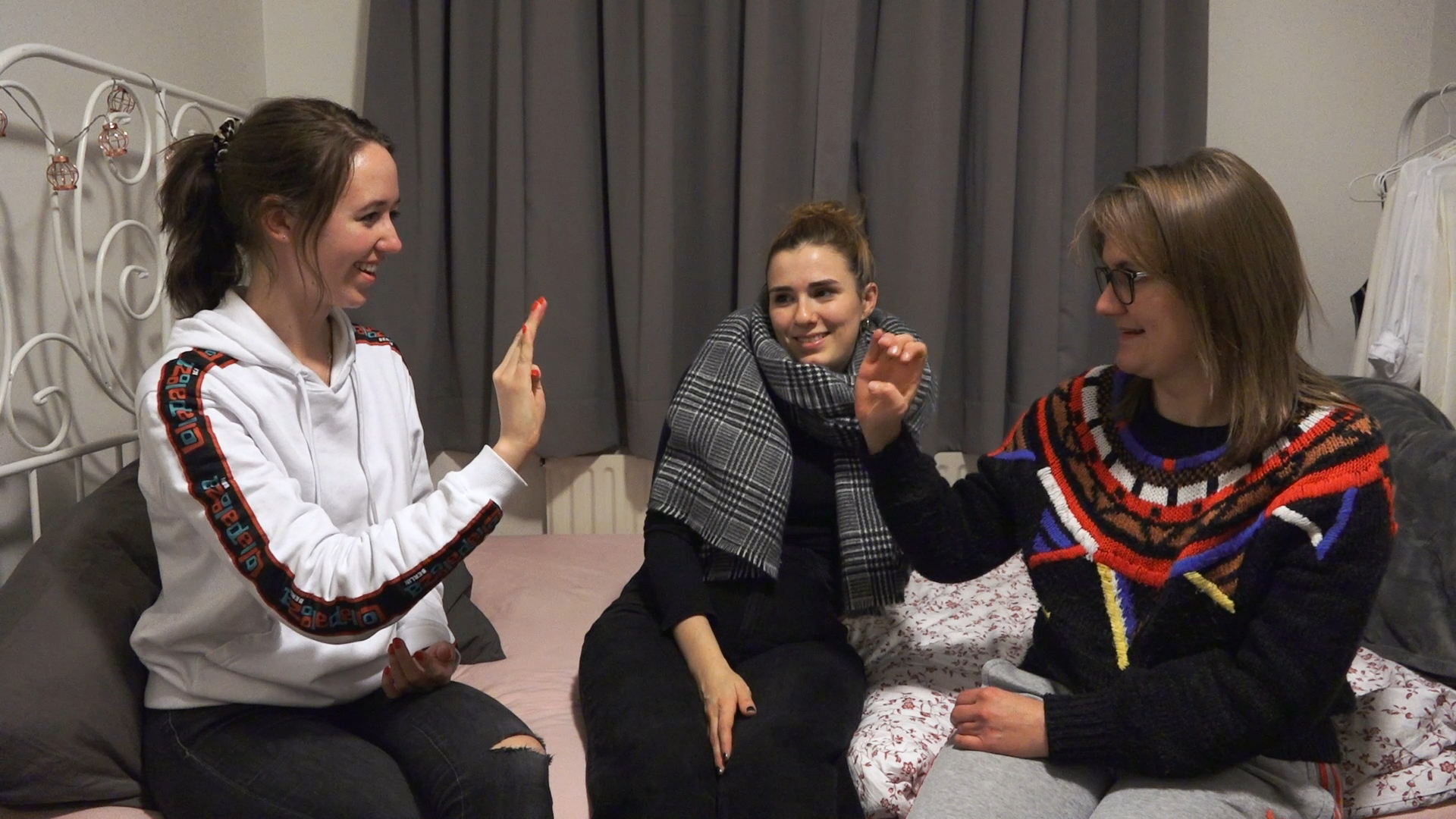 Familie und Beziehungen - Wohngemeinschaft, Gehörlose, Studenten Zu Gast in einer gehörlosen Studenten-WG
