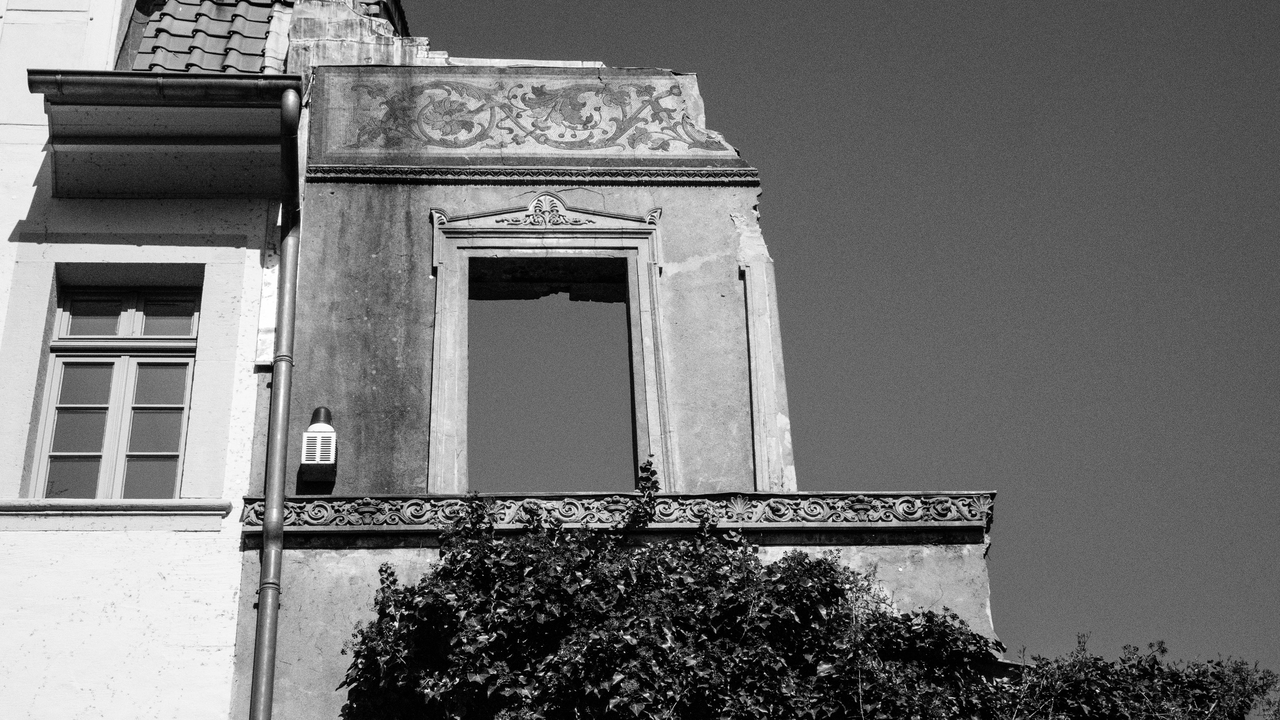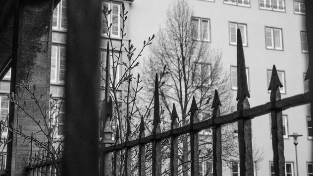 Die Ruine des im 2. Weltkrieg zerstörten Hotels Handelshof in der Lessingstraße in Braunschweig. Das original erhaltene Stück der Fassade dient nun als Mahnmal.