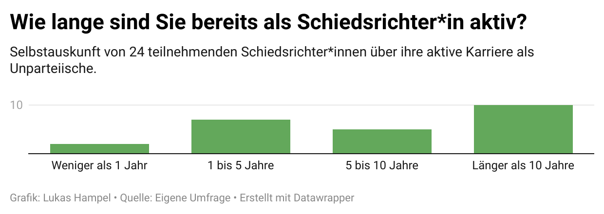Zur Einordnung der TeilnehmerInnen gaben 24 Unparteiische über die jeweilige Länge ihrer Schiedsrichter-Karriere Auskunft.